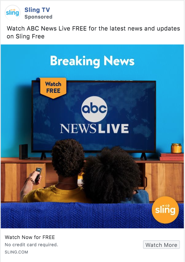 All streaming services know their time to shine has come, but we like ads from Sling TV because they’re simple and focus on what matters to their audience - live news and a great variety of available channels.