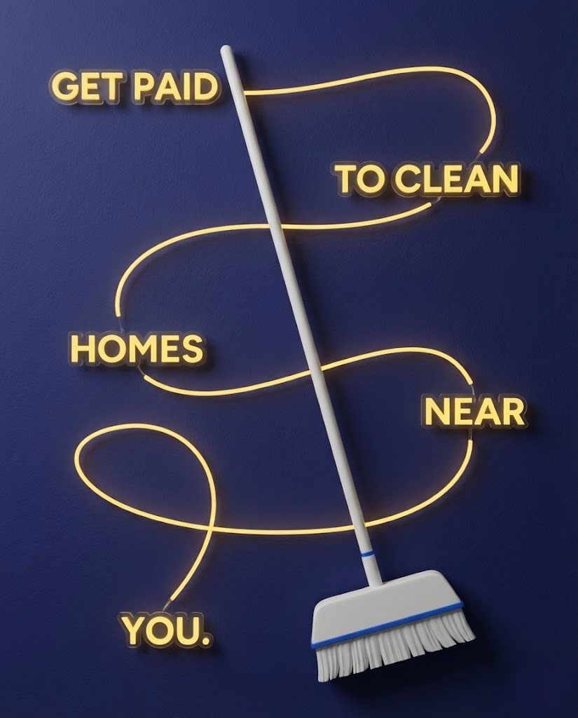 The copy: GET PAID - TO CLEAN - HOMES - NEAR - YOU.